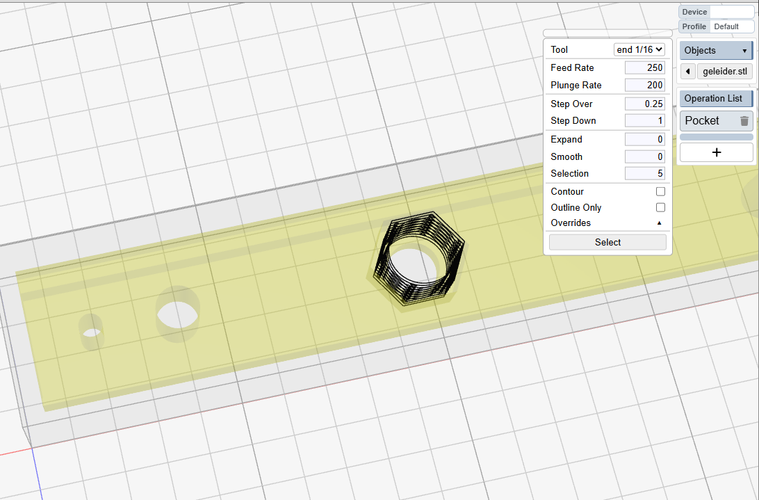 I have this model and I want to mill out the hex for the bolt, I use the pocket operation.