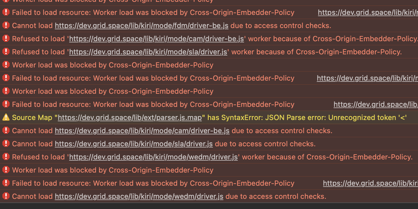 can you try a browser other than safari? it’s throwing CORS errors which none of the other browsers seem to be doing.