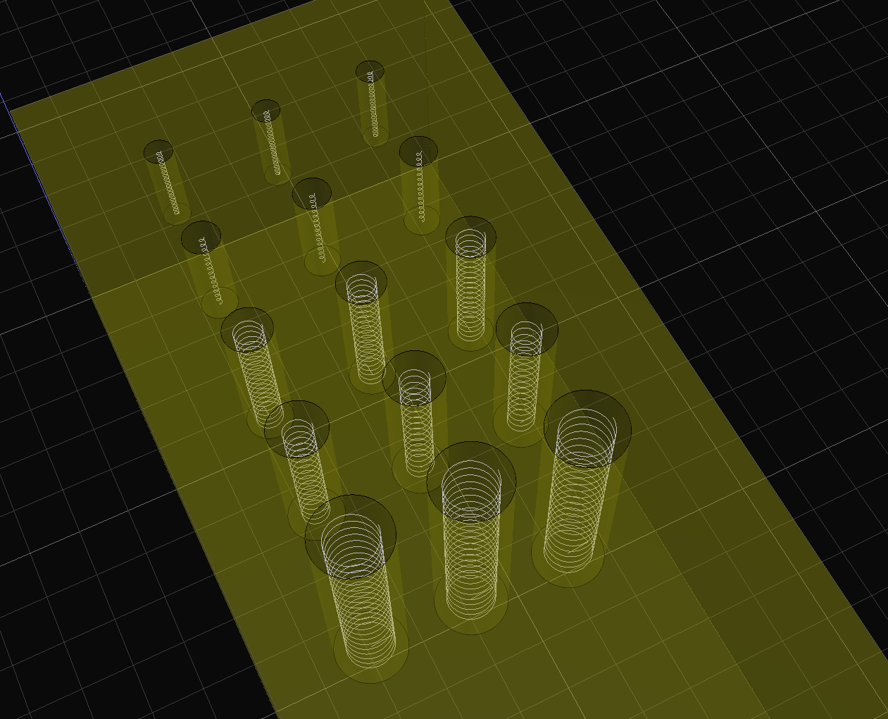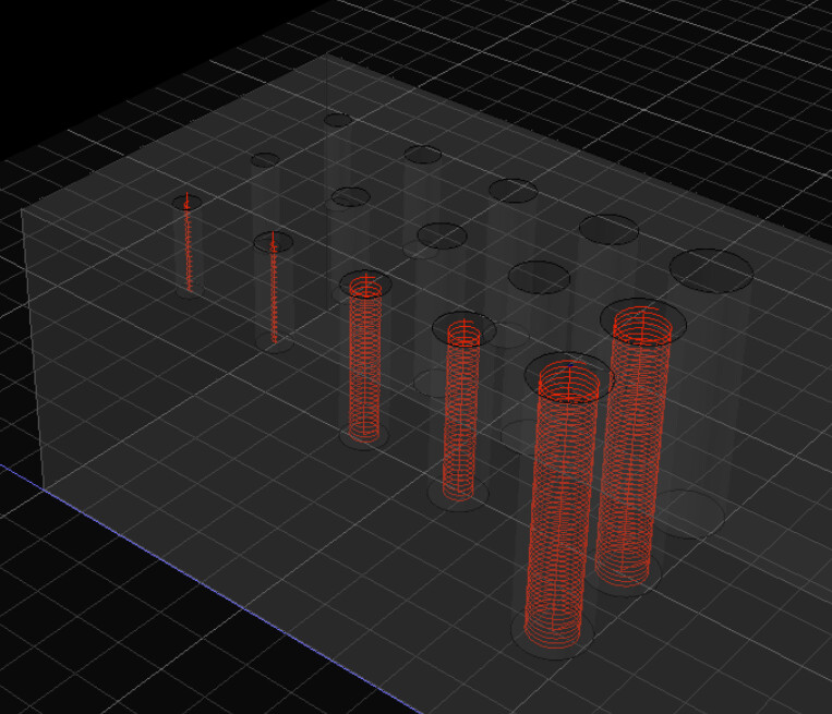 I changed for all helica’s the M3 bit and you can see it uses the same diameter for M3 and M4 hole, but also the same for M5 and M6 hole (using the M3 bit for everything is impossible as it has only a 9mm depth, but theoretically it should be milling this.