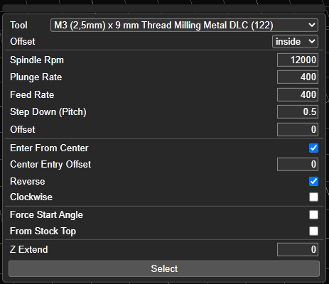 I’m missing a thread milling option, would be awesome if that wase implemented