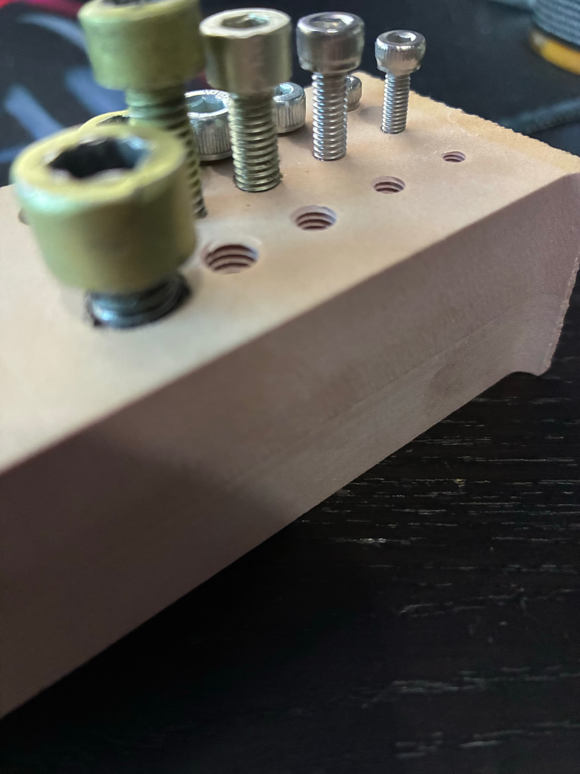 Resulting the bit dropping in too deep and hitting the sides of the hole with the shaft. luckily it’s sickablock and nothing bad happens.