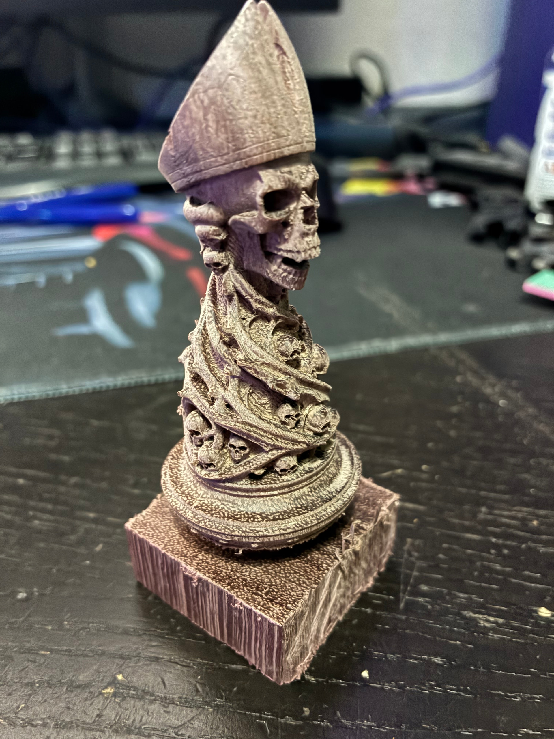No, I’m going to finish all pieces, I need 3 more bishops, 1 in purperheart and 2 in beechwood, and I need both the queens, and in beechwood I need 1 more pawn, in pupleheart I need 5 more pawns. and then I’m going to flatten the bottom with a little pocket for a metal plate and then some felt over it, and then the board with magnets in the squares and brass inlay ![]()