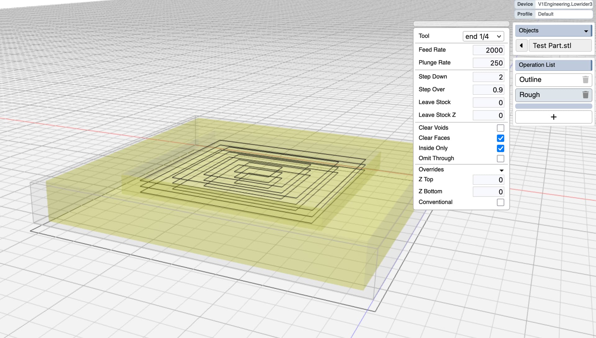 But when I try to replicate that behavior using the Kiri engine API I’m getting some funky behavior where it want’s to cut the entire part out of existence ![]()