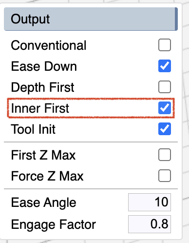 Today I finally had a chance to run some test cuts using trace with clear. It was not a success. What trace does not take into account is that every other pass is either outside towards the center or inside towards the outer edge. When the final cut is outside towards in I have the central chunk moving around causing all kinds of havoc.