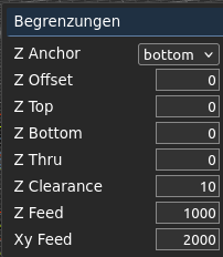 Z-Cleareance must be set so you do not hit any brackets. Z Feed and Xy Feed set the movement speed between parts