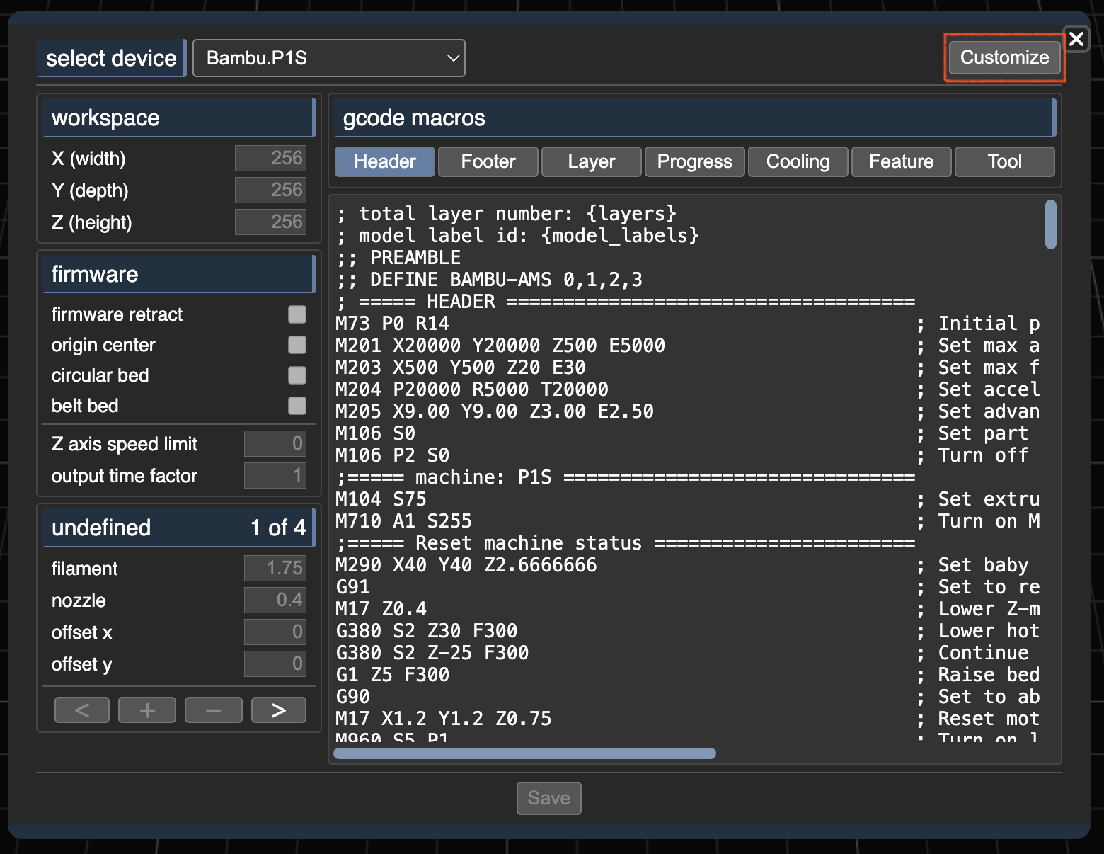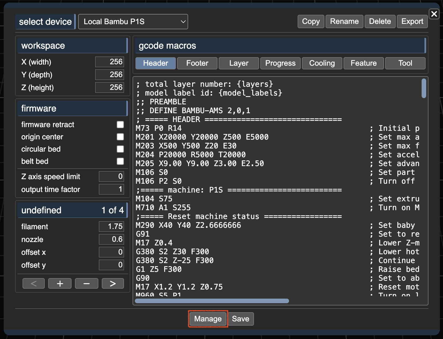 Now when you export gcode, a new section will show up in the export dialog that allows you to select your printer and optionally a starting AMS slot.