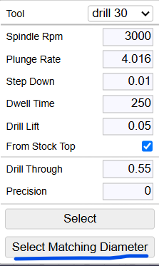 perhaps the checkbox could be for matching the tool diam, and the buttons can be select (from cache) and select (recalc).